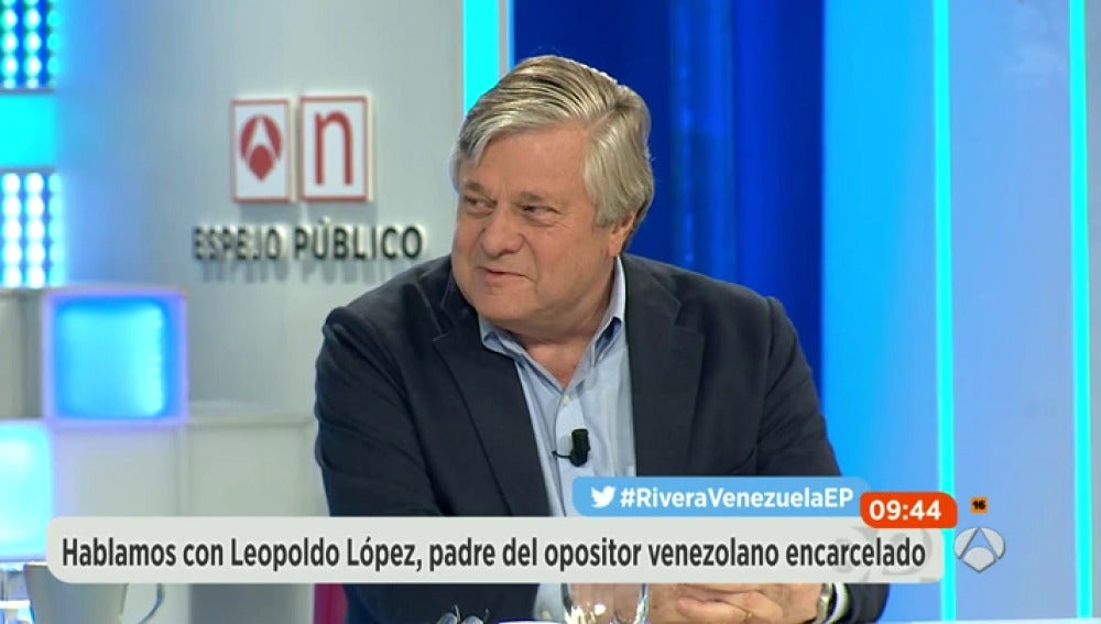 Vive exiliado en España pues la situación en Venezuela le impide vivir allí. El padre del opositor Leopoldo López, encarcelado en Venezuela, ha relatado en Espejo público la situación que se vive en su país. "Los derechos no se negocian. No por qué el señor Zapatero dice que se ha llegado a un acuerdo para el diálogo", al tiempo que asegura que el ex presidente zapatero no se reunió con él antes de viajar a Venezuela.