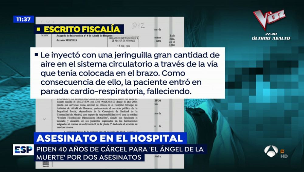 Fiscalía pide 40 años de cárcel al 'ángel de la muerte' por dos asesinatos: "Le inyectó aire en el sistema circulatorio"