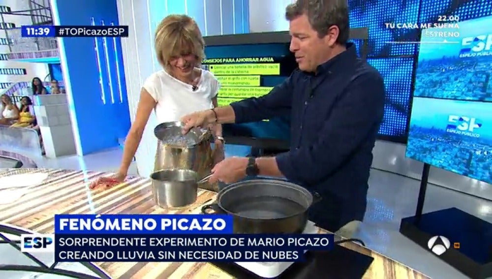Mario Picazo habla en 'Espejo Público' de la preocupante sequía que azota varias zonas de España, la peor sequía en los últimos 20 años. "Las previsiones estacionales apuntan a un aumento de las temperaturas" asegura Picazo. Y sorprende haciendo llover en el interior del plató.