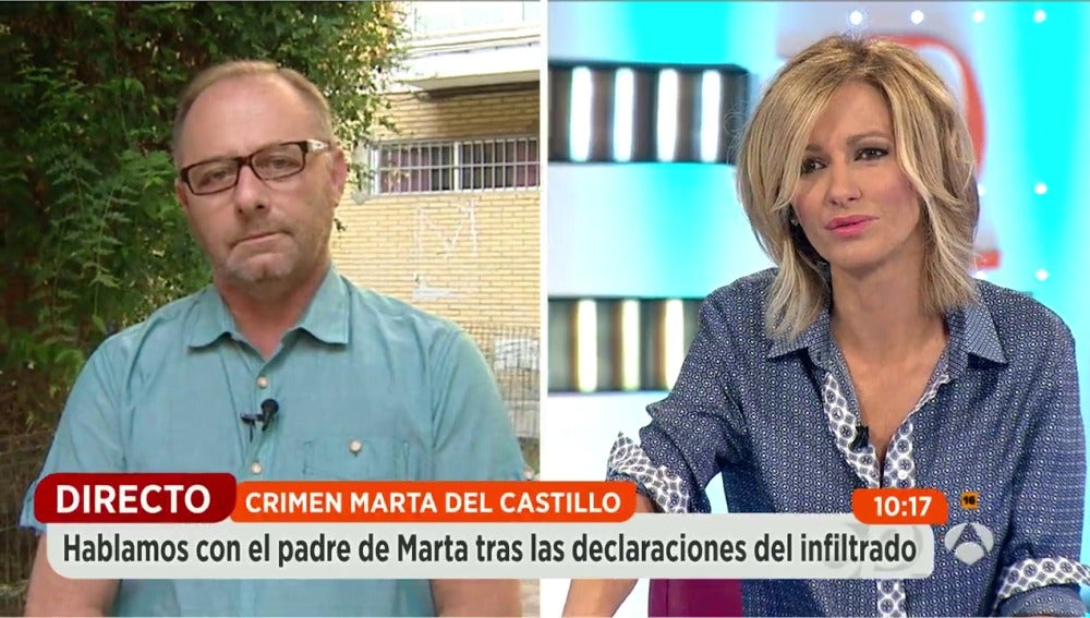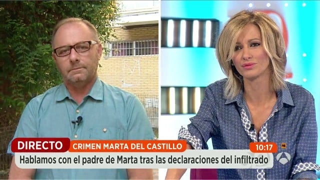Antonio del Castillo, el padre de Marta ha declarado que ya conocía los datos que el infiltrado en el entorno de "El Cuco" relató en exclusiva a Espejo Público. "He escuchado muchas de las grabaciones que él tiene y le doy toda la credibilidad". El padre de Marta ha reconocido que, tras escuchar las grabaciones, la madre de "El Cuco" puede saber algo. "Sé de sobra que esa mujer aquella noche, encubrió al hijo. Lo que no entiendo es por qué judicialmente no se hizo nada porque hay indicios contra ella. Debería haber dado muchas explicaciones", afirma Antonio del Castillo.