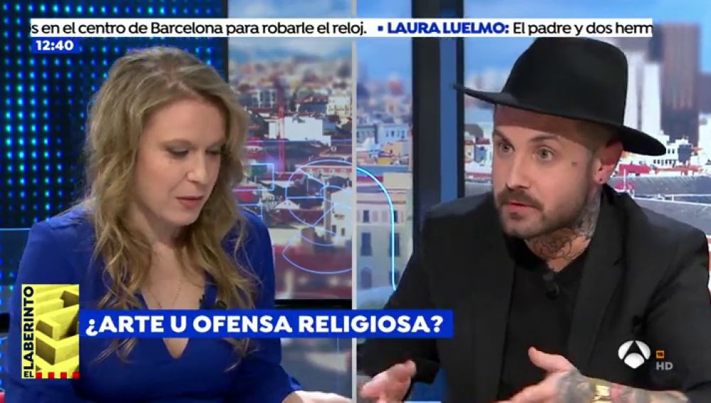 Abel Azcona y Polonia Castellanos, presidenta de la Asociación de Abogados Cristianos, han tenido un cara a cara en Espejo Público por la última denuncia al artista por escribir 'pederastia' con hostias consagradas.