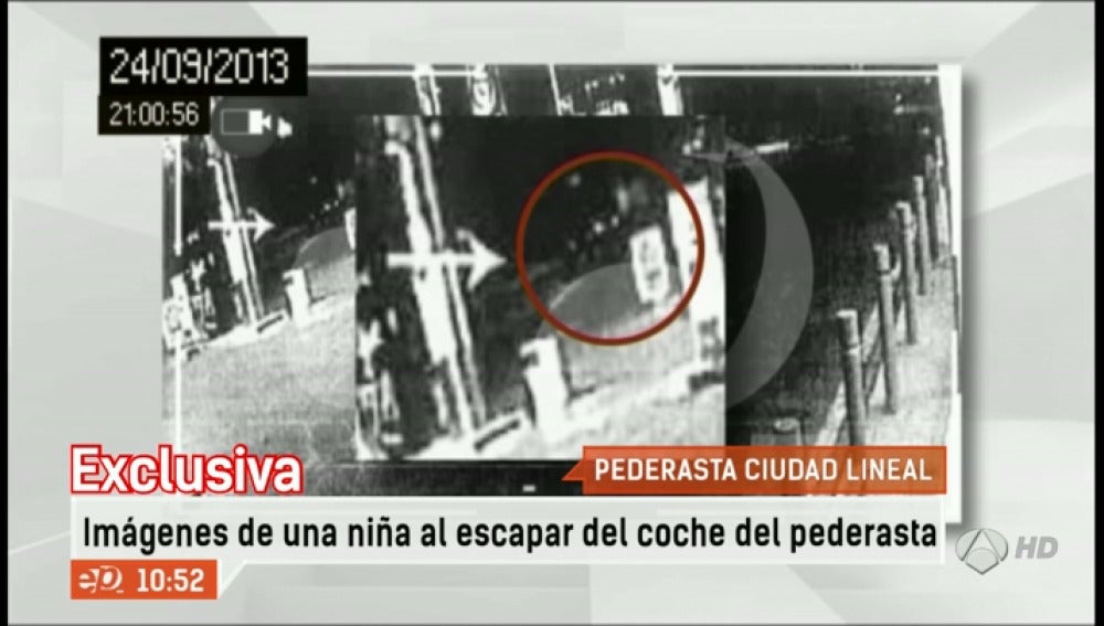 Una de las víctimas del presunto pederasta de Ciudad Lineal no ha sido llamada a declarar y su testimonio es fundamental en el caso. Espejo Público ha tenido acceso en exclusiva a imágenes de esa niña, escapando del pederasta, grabadas por una cámara de seguridad.