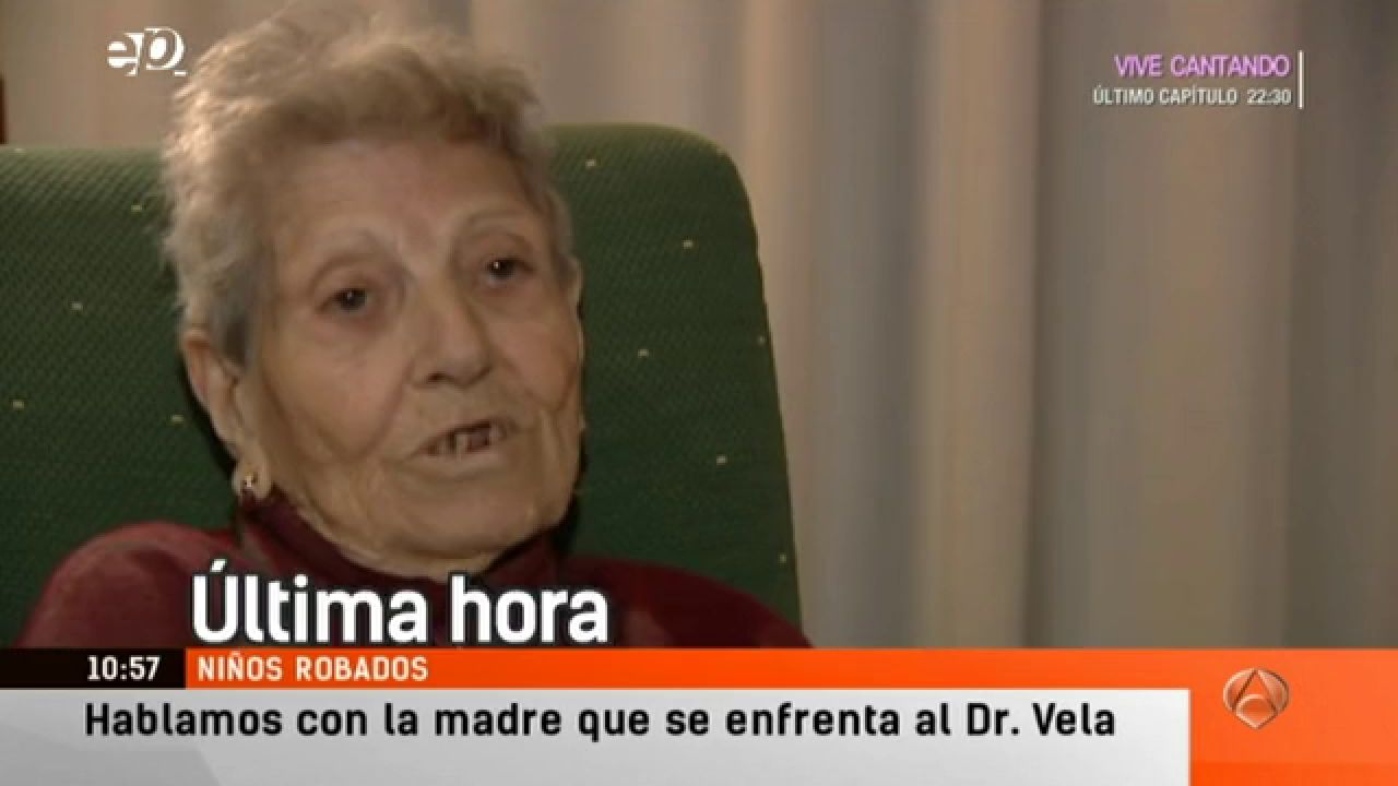 Inés Pérez tiene 90 años y ha pasado por los juzgados de la Plaza de Castilla de Madrid para declarar, como imputada, por la trama de robo de bebés. Se enfrenta en un careo con el también imputado Doctor Vela, el hombre que aparece como el principal responsable, junto a la fallecida Sor María, en el tráfico de bebés en España.