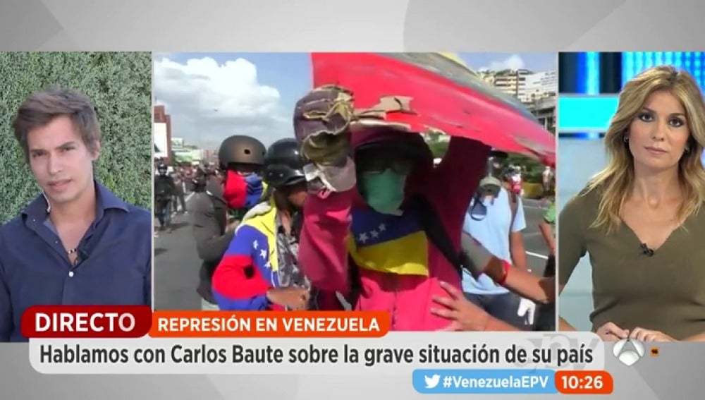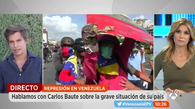 La violencia en las calles de Venezuela se recrudece a una semana de la consulta organizada por Nicolás Maduro para aprobar la Asamblea constituyente. Uno de los últimos heridos ha sido un violinista muy conocido allí por poner música a esas protestas y ha lanzado un mensaje de lucha y resistencia. 'Espejo Público' habla con Carlos Baute sobre la grave situación de su país. Además, Miguel Bosé pide que "Dios fulmine a Maduro" por matar a sus germanos a través de Twitter.