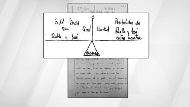 Las cartas que José Bretón ha estado enviando tanto a Ruth Ortiz como a su familia política siempre han estado encabezadas por un extraño dibujo en el que escribe, "Esta es la balanza de vuestra conciencia".