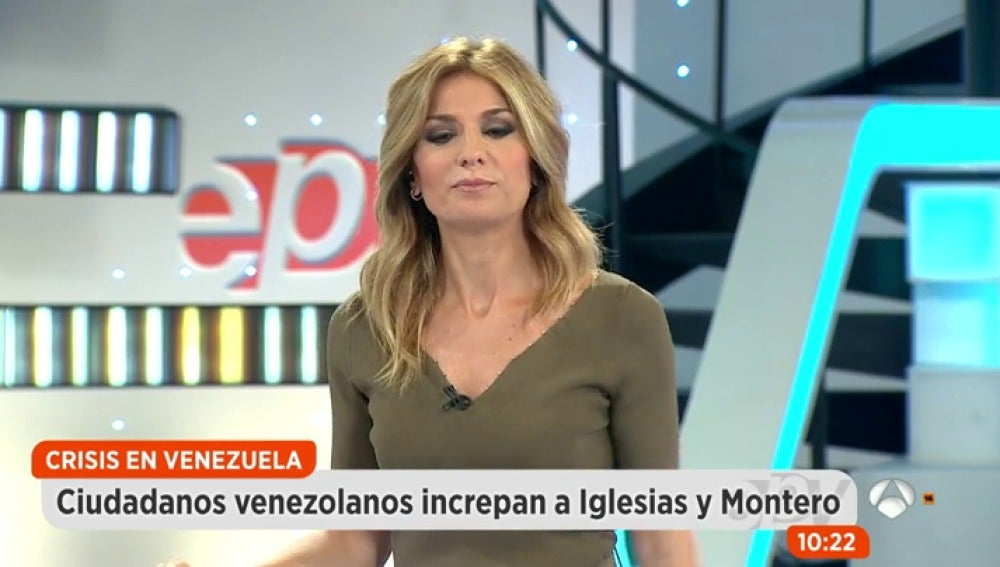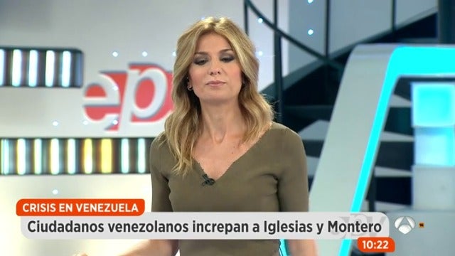 Antena 3 » Programas » Espejo Público » Noticias CRISIS EN VENEZUELA Ciudadanos venezolanos increpan a Pablo Iglesias e Irene Montero Fueron los escoltas los que hablaron, ninguno de los dos reaccionó, se quedaron en su sitio y no intervinieron en esto Más sobre este tema: Espejo Público Irene Montero Pablo Iglesias Venezuela