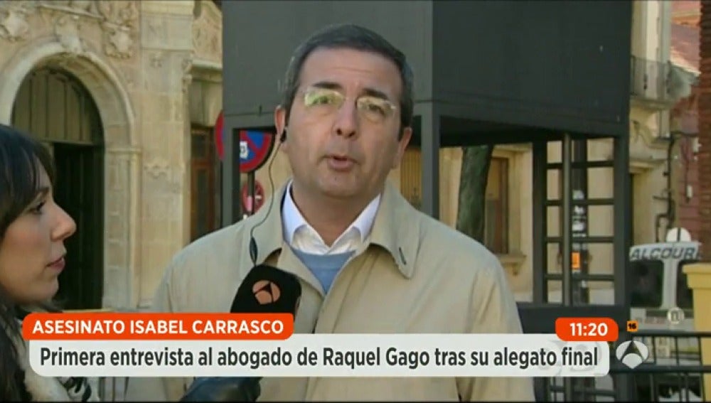 El abogado de Raquel Gago, la policía municipal implicada en el caso del asesinato de Isabel Carrasco ha hablado en Espejo Público pocas horas depués del alegato final de su defendida. Según Fermín Guerrero, "si las acusaciones estuvieran convencidas de lo que piden, no deberían presentar conclusiones alternativas", asegura.