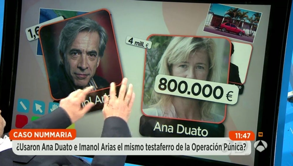 Antena 3 » Programas » Espejo Público » Noticias OPERACIÓN CITY ¿Cuál es la posible vinculación de Imanol Arias y Ana Duato con la Púnica? La investigación ya apunta al testaferro que utilizaban los actores para ocultar prestuntamente sus ingresos a través de los abogados de Nummaria. Más sobre este tema: Espejo Público Ana Duato Imanol Arias