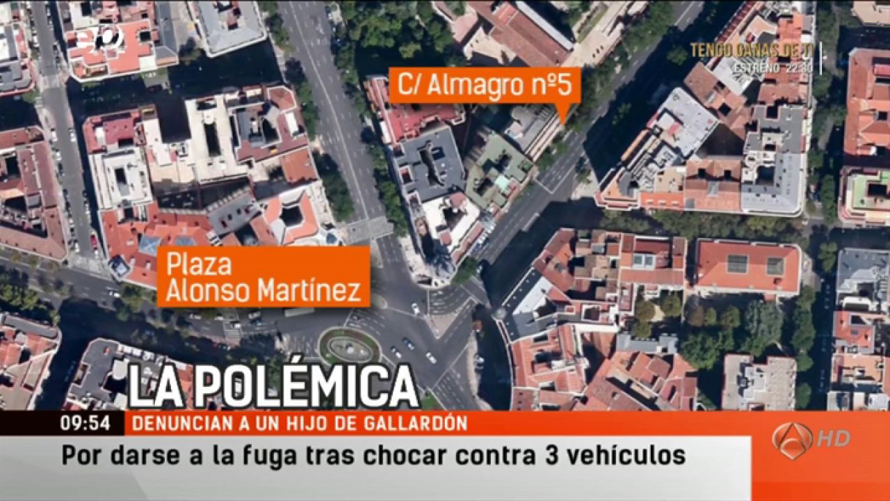 El coche choca contra el lado izquierdo de un vehículo que se encontraba en movimiento y después se choca contra otros dos vehículos más. El hijo de Ruiz Gallardón se bajó el coche y tras ver lo ocurido, se vuelve a montar en él y se dirige a su domicilio. Cuando la policía local llega al lugar e investiga el incidente, los testigos, que habían tomado fotos del coche les enseñan la foto de la matrícula y los agentes se dirigen al domicilio del titular del coche denunciado. Allí, la seguridad confirma que el coche ha entrado en el garaje y que lo conducía el hijo del ministro.