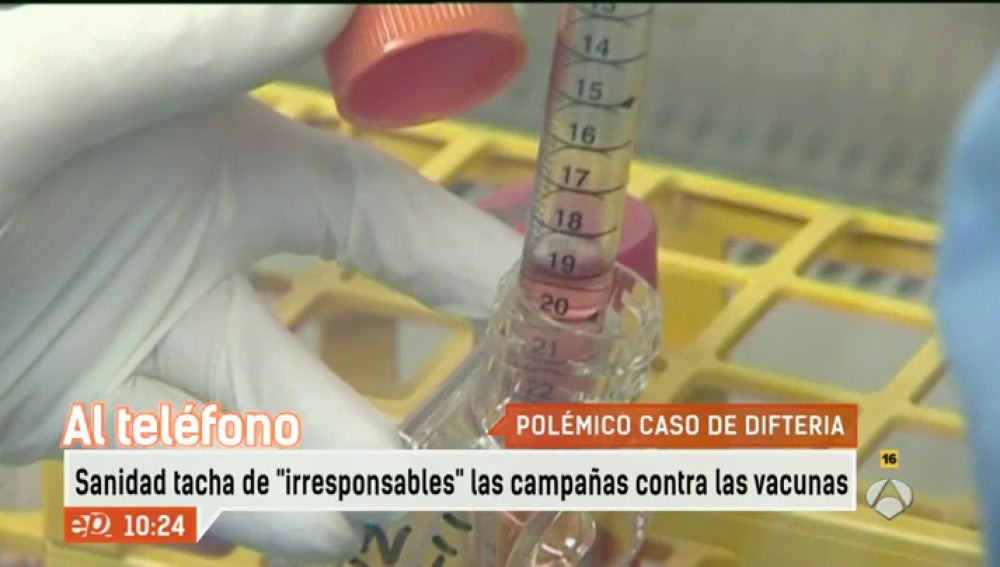 El secretario de Estado de Sanidad, Rubén Moreno, ha declarado a Espejo Público en relación al reciente caso de difteria declarado en España que la vacunación "no es obligatoria" en España. "El problema que nos hemos encontrado es poder encontrar alguna antitoxina para intentar salvar la vida de este niño pues esta enfermedad casi no existe en Europa", asegura. Según Moreno, "hay que concienciar a la gente de que el derecho a vacunarse no es de los padres. Es un derecho de los niños que está pensado para protegerles a ellos y a nosotros. Son una gran irresponsabilidad estas actitudes", en referencia a todas aquellas personas que se oponen a la aplicación de vacunas.