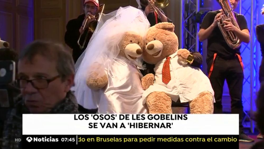 Les han dicho 'adiós' por todo lo alto. Se ha organizado una gran fiesta en la que incluso han celebrado una boda entre dos de los peluches. Un centenar de personas han querido acercarse al ayuntamiento para despedirse de ellos. Aunque de forma temporal, los 'ositos' se van a 'hibernar' y volverán a las calles de París en primavera.
