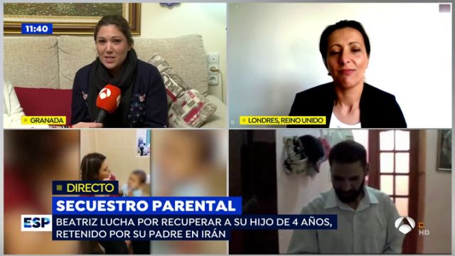 La vida de Beatriz es una pesadilla desde hace un año. Cuando estaba en trámites de separación de su marido por malos tratos éste secuestró a su hijo y se lo llevó a Irán. Susi Salas, ha querido dar su apoyo a Beatriz contándole su propia experiencia. Su marido también secuestró a sus hijos en Argelia. Asegura que hay mucho desconocimiento en la administración española sobre el secuestro parental, que se agrava cuando el destino del menor es otro país. "El tiempo corre en tu contra porque solo tienes dos años para demandar la sustracción", lamenta.