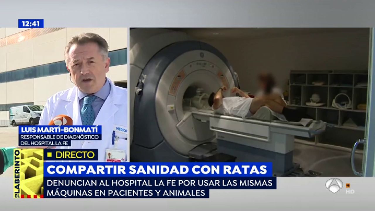 Fiscalía investiga el Hospital La Fe de Valencia por usar las mismas máquinas para animales y humanos. La personas comparten con ratas y cerdos unas pruebas médicas sin autorización de la dirección ni de sanidad. Luis Martí-Bonmatí, responsable del área de diagnóstico del hospital, afirma tener todos los permisos y haber informado previamente a los pacientes. "Tenemos todas las autorizaciones pertinentes para poder utilizar equipamientos en días distintos y después de las limpiezas adecuadas", afirma. Además, confirma que es una práctica habitual en los centros de investigación.