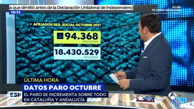 El paro ha subido en 56.844 personas, una subida menor que en otros meses de octubre anteriores y lo hace en 15 comunidades autónomas. En donde más ha subido es en Cataluña, y en segundo lugar Andalucía. La Seguridad Social suma 94.368 afiliados el pasado mes.