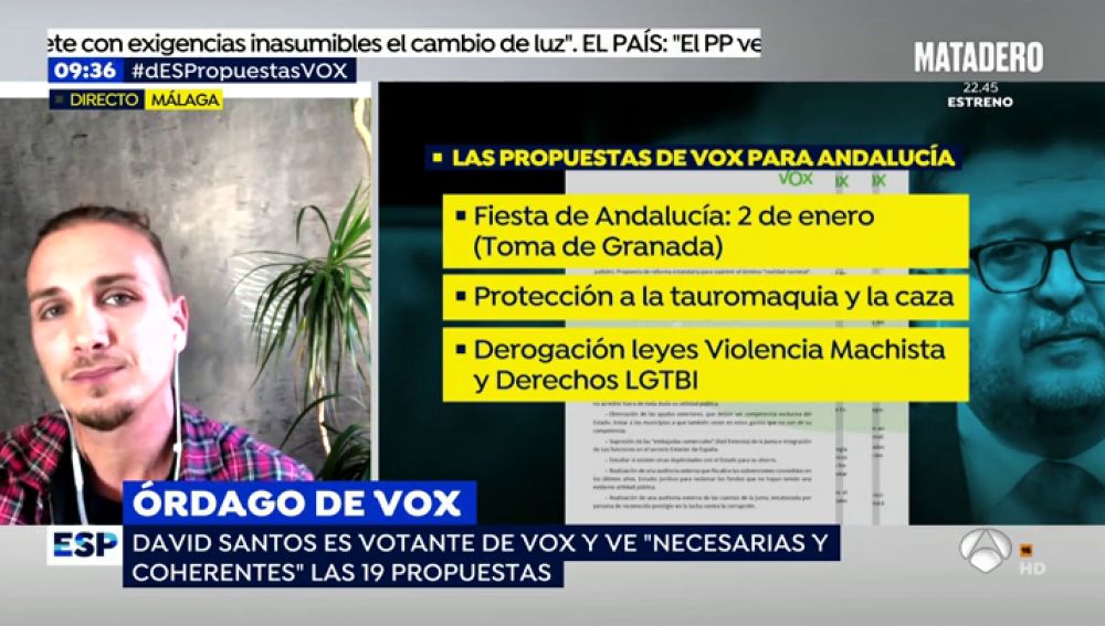 David Santos es uno de los 400.000 andaluces que votó a Vox en las pasadas elecciones. Considera que las condiciones que pone el partido de Santiago Abascal para negociar son coherentes y cree que acabarán formando Gobierno.