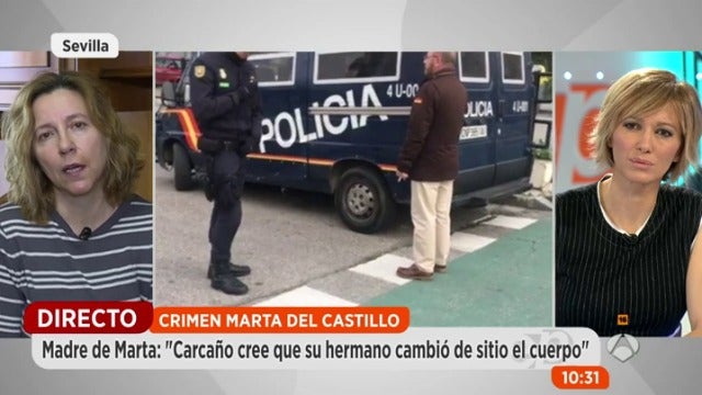 Relata Eva Casanueva que su marido se vio en una sala con Carcaño junto a un funcionario y le estrechó la mano. Migue Carcaño le dijo con contundencia que Marta no estaba en el río. Aseguró que trasladaron el cuerpo a una finca dirección carretera de La Rinconada. "Del tanatorio hacia adelante". Se trata de la finca de la Majaloba donde la Policía ya buscó el cuerpo de Marta.