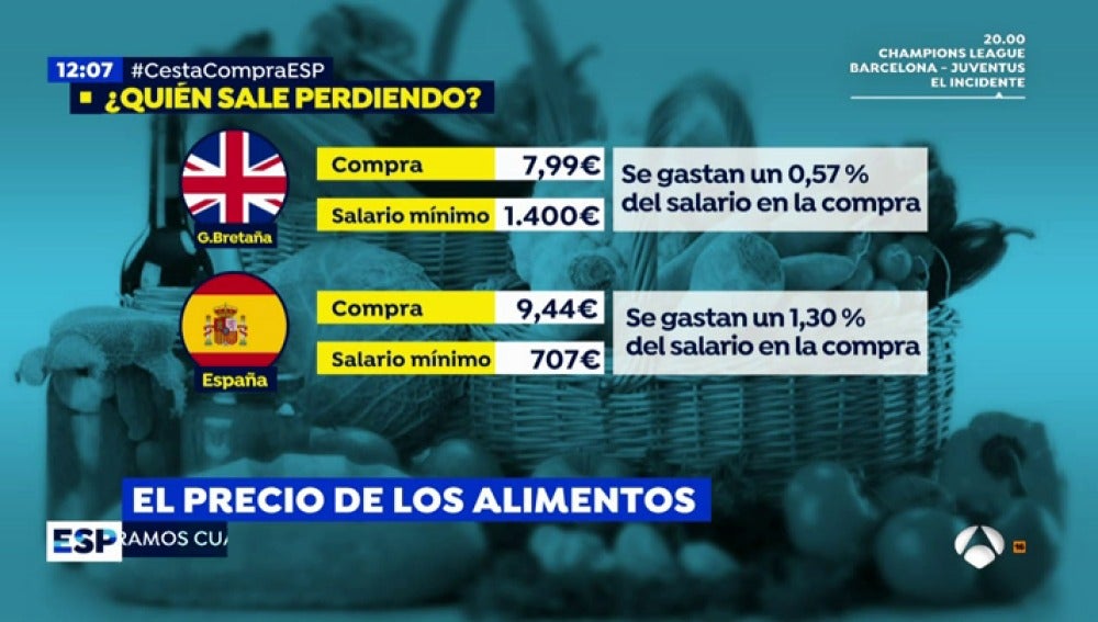 'Espejo Público' compara cuánto cuesta la cesta de la compra en España y Reino Unido, ¿dónde es más barato? Se han comprado los cincos mismos productos básicos: huevos, leches, pan, pollo y manzanas; y se ha buscado el precio medio. Anteriormente se había hecho este experimento en Alemania y reveló que los españoles salían perdiendo.