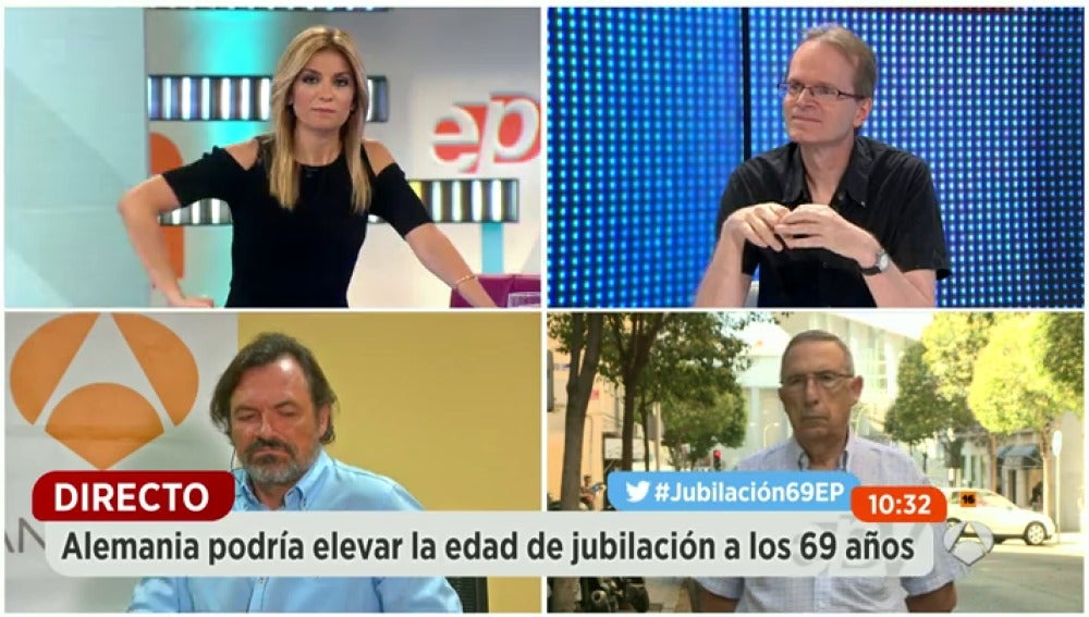 Antena 3 » Programas » Espejo Público » Noticias ¿Pensiones en peligro? ¿Es sotenible el sistema de pensiones español? Debatimos la propuesta alemana de #Jubilación69EP con un corresponsal y un abogado germanos y un jubilado activo español. Más sobre este tema: Espejo Público