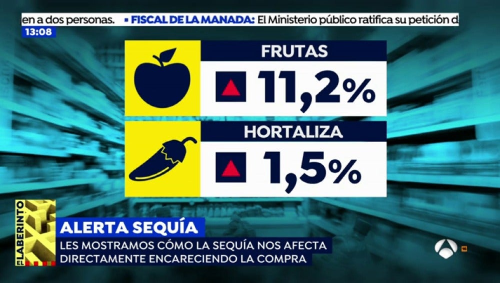 Una reportera de 'Espejo Público' comprueba en el mercado cómo afecta la sequía al precio de los productos y cómo encarece la compra. La sequía provoca que el precio de la fruta suba un 11,2% y la hortaliza un 1,5%.