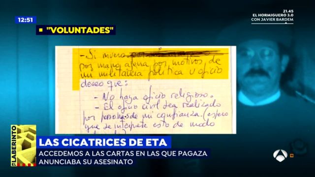 Espejo Público saca a la luz las cartas de Joseba Pagazaurtundúa antes de su asesinato: "Me quieren matar por pensar así"