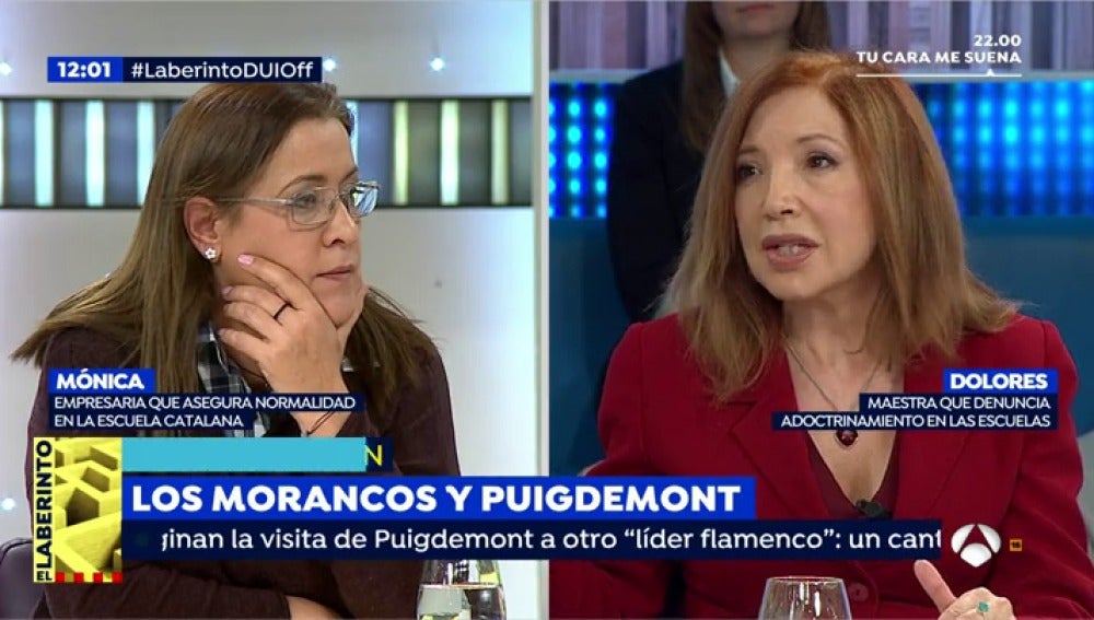 ¿Existe adoctrinamiento en las escuelas catalanas? 'Espejo Público' lo debate con Dolores Agenjo de 'Ahora Plataforma', maestra que denuncia el adoctrinamiento en las escuelas y con Mónica, empresaria que asegura normalidad en la escuela catalana. Para ver el cara al cara completo en pinche aquí.