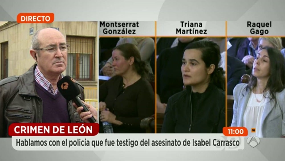 Gracias a su colaboración, se detuvo a las presuntas responsables del crimen de la presidenta de la Diputación de León Isabel Carrasco. Pedro Mielgo es el policía jubilado que ha declarado en la tercera jornada del juicio por el crimen de León. Después de declarar, ha hablado con Espejo Público y ha relatado pormenorizadamente cómo logró seguir a la supuesta responsable.