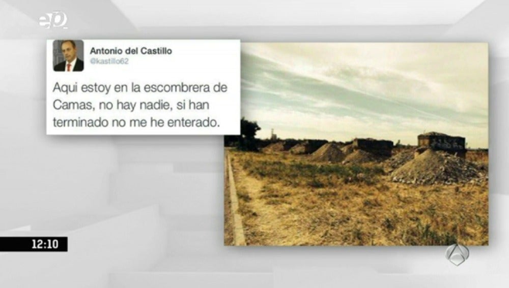 Antonio del Castillo ha puesto un tuit en el que asegura haber ido a al escombrera de Camas donde se busca el cuerpo de su hija, y haberlo visto completamente vacío. Se ha mostrado indignado por esta paralización.