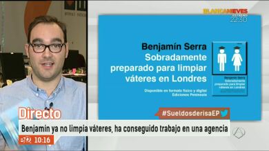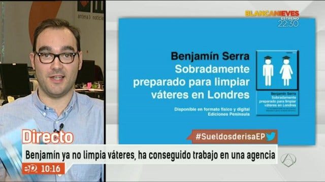 Otro caso que saltó a la fama fue el de Benjamín Serra que revolucionó las redes sociales publicando un tweet acerca de su situación laboral en Londres. Este joven valenciano, con dos licenciaturas y con un máster, trabajaba en una cafetería de Londres limpiando váteres. Su historia llamó la atención a la editorial Planeta, a través de Ediciones Península, que le pidieron que escribiera su historia. El resultado "Sobradamente preparado para limpiar váteres en Londres", su primer libro. Benjamín asegura que su historia no es particular, es la historia de muchos pero con la suya abandera la situación de los jóvenes españoles fuera de nuestras fronteras. Afortunadamente, Benjamín ha encontrado un trabajo en una agencia de publicidad y, de momento, no quiere regresar a España.