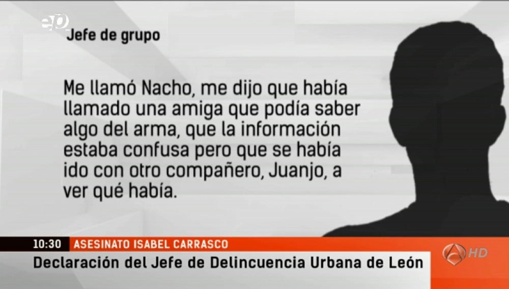 Su declaración podría explicar las razones por las que Raquel Gago, la Policía local implicada en el asesinato, tardó casi 30 horas en comunicar que tenía en su coche el arma utilizada en el crimen. "Me llamó Nacho, me dijo que había llamado una amiga que podía saber algo del arma, que la información estaba confusa pero que se había ido con otro compañero, Juanjo a ver qué había". Así relata el jefe de grupo de delincuencia urbana de la policía, la llamada que recibió de uno de sus colaboradores al día siguiente del asesinato de Isabel Carrasco.