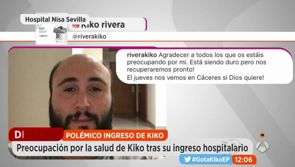 Lo que en principio parecía una visita rutinaria al hospital para unos análisis se ha convertido en un ingreso de tres días por un ataque de gota por el que le han tenido que sacar líquido de la rodilla. Así lo ha retransmitido Kiko Rivera a través de sus redes sociales donde ha informado de las visitas que ha recibido en el centro médico.