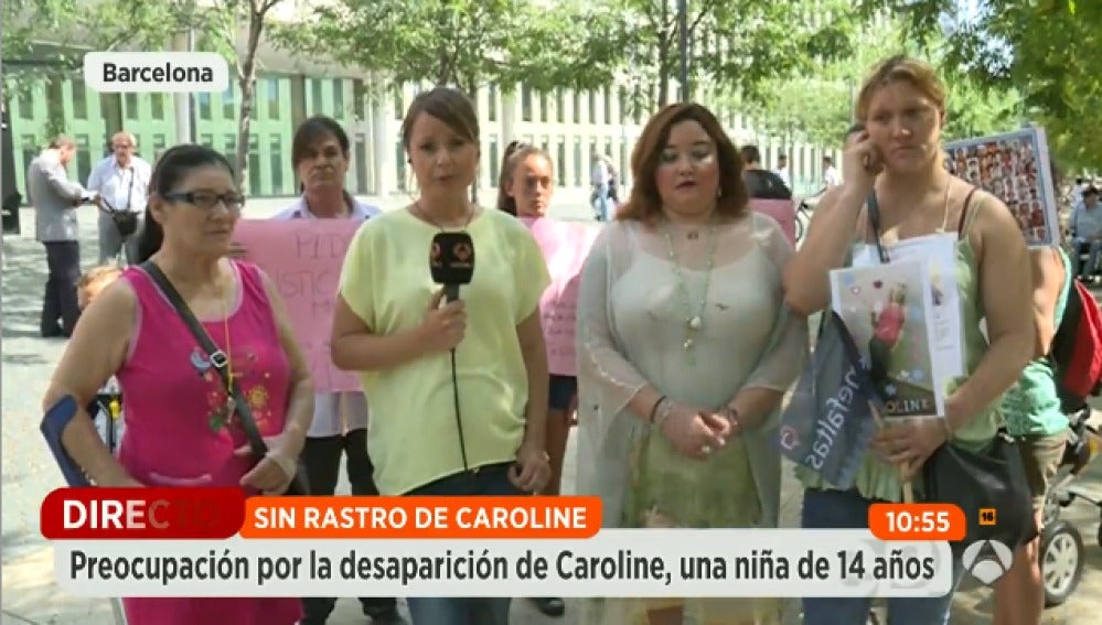 Familiares y amigos se reúnen en la Ciudad de la Justicia para exigir que no se olvide su caso y se siga investigando. Para la madre de Caroline es una tortura vivir sin saber dónde está su hija. Se quejan del trato de la policía y de la falta de investigación por su parte.