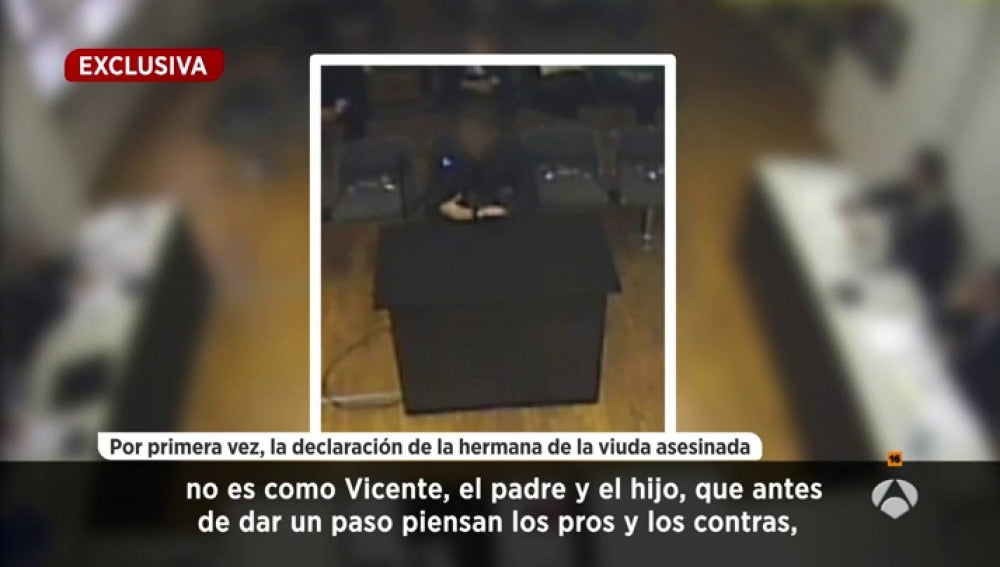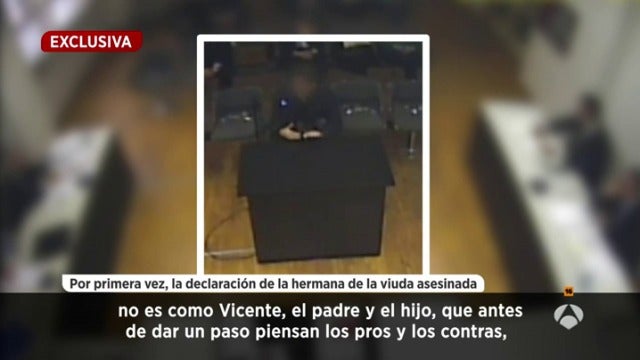 La hermana de María del Carmen Martínez, conocida como 'la viuda de la CAM' y asesinada de dos disparos en la cabeza, ha declarado en los juzgados de Alicante sobre el caso. La hermana apunta a que el yerno, Miguel López, es el único que ha podido cometer el crimen.