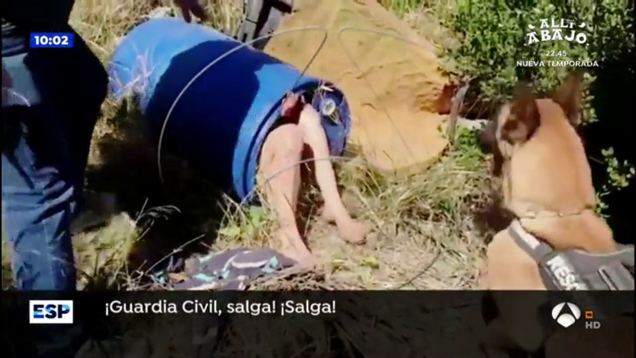 Los agentes, acompañados de perros adiestrados, se adentraron en el campo situado junto a la casa okupa donde vivía la familia en Godella (Valencia). Los canes encontraron, metida en el interior de un bidón, a María. La joven, completamente desnuda, se había introducido en este minúsculo espacio y presentaba dificultades para salir de él.