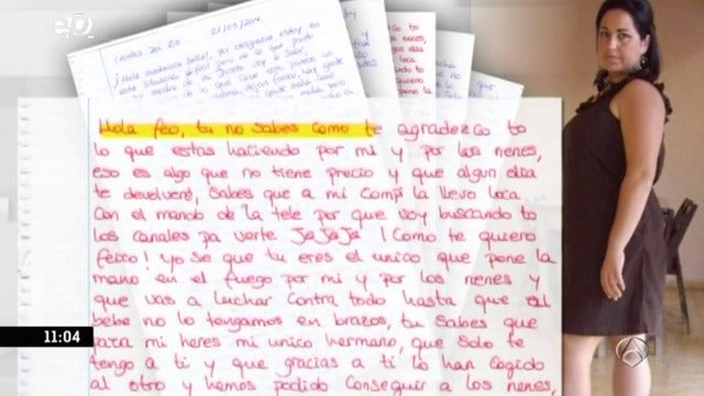 "Hola feo, tu no sabes como te agradezco todo lo que estás haciendo por mi y por los nenes, eso es algo que no tiene precio y que algún día te devolveré. Así comienza la carta de una madre arrepentida. Cartas escritas desde la cárcel a las que Espejo Público ha tenido acceso. Escritos de su puño y letra dirigidos a su hermano Miguel y a su madre. "Madre en este momento estoy bien dentro de lo que cabe. Sabes que echo mucho de menos a mis enanos: a mi negrito flaco, a mi princesa y a mi nene bello, sabes que son el amor de mi vida y que por ellos estoy aquí, pero algún día voy a salir y nunca más me voy a separar de ellos, solo te pido que, por favor, no pierdas la comunicación con ellos y que hagas todo lo posible para traerlos contigo a la casa".