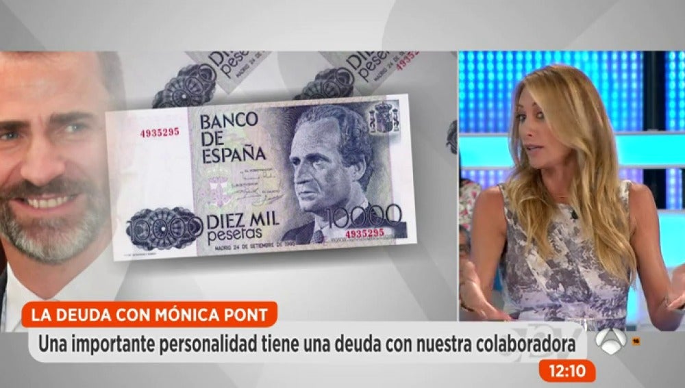 17 años ha tardado en contar esta confidencia Mónica Pont: una importante personalidad tiene una deuda con la colaboradora. El rey Felipe VI le debe 10.000 pesetas de una jornada de esquí acuático en el año 2000.