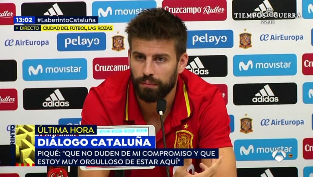 Gerard Piqué ofreció una rueda de prensa ante los medios de comunicación tras la polémica generada los últimos días con la selección española de fútbol y el 1-O. El central afirmó que se queda en la Selección, aunque se planteó dejarlo, y dice que le duele que se dude de su compromiso. "Un independentista podría jugar con España".