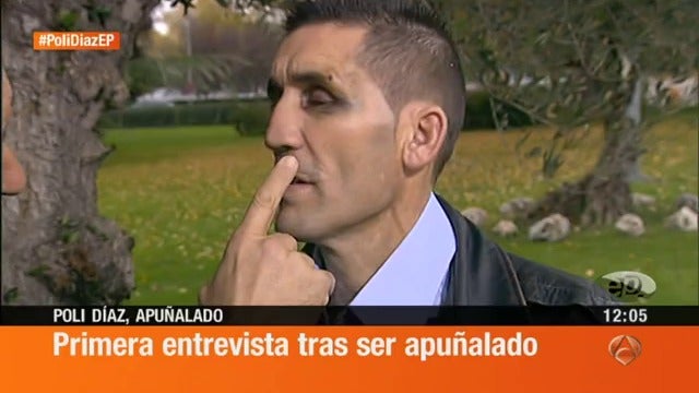 "El potro de Vallecas", Poli Díaz, se recupera lentamente de una paliza que varios desconocidos le porpinaron cerca de su casa. Poli ha asegurado a los micrófonos de Espejo Público que no era la primera vez que le sucede esto "ya me ha pasado varias veces. La policía me ha dicho que me vaya, pero yo no voy a dejar vallecas que es mi barrio".