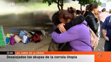 36 familias ocupaban de forma ilegal un edificio de nueva construcción, propiedad de una entidad bancaria, conocido como la corrala utopía. Llevaban 2 años viviendo allí. Llegaron en bloque porque, aseguran, no tenían otra elección. La mayoría habían sido deshauciados de su anterior vivienda al no poder hacer frente a su hipoteca. La negociación no llegó a buen puerto y una vecina confirmaba al resto de vecinos lo que todos temían. Hace tan sólo unas horas la policía nacional iniciaba la operación de desalojo. Muchos salían con sus pertenencias y por su propio pie de las viviendas, pero varias personas han intentado impedir el deshaucio sentándose en la calzada de la avenida. Esos han sido los momentos de tensión más complicados que se han saldado con una persona detenida.