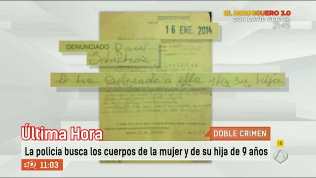 En Madrid, un caso de desaparición se ha convertido en un doble asesinato. Nada se sabía desde hace meses de una mujer y de su hija de 9 años hasta que su pareja sentimental ha confesado un crimen que se podía haber evitado, pues la abuela había denunciado el maltrato. "Me dijeron que no entendían mi letra".