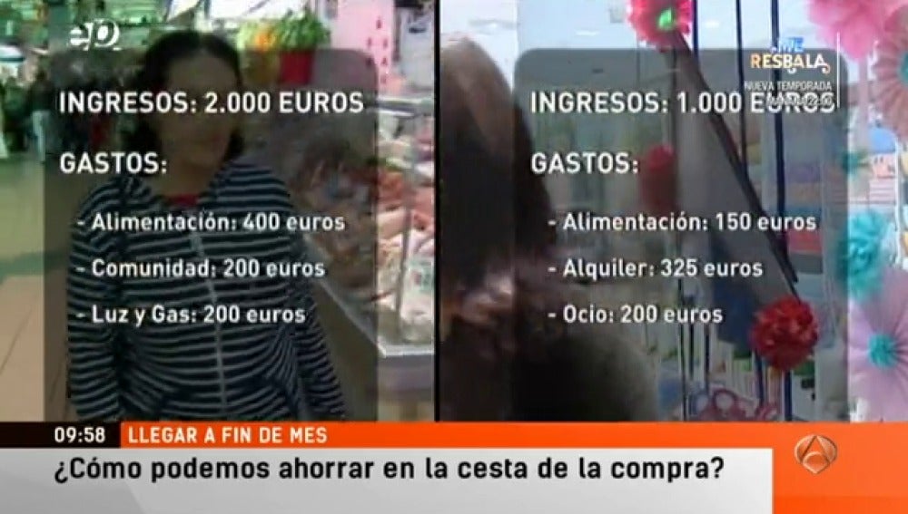 En Espejo Público hemos acompañado a dos mujeres a la compra para ver cómo hacen para "estirar" los euros que tienen. En la familia de Merche son cuatro y tienen 2000 euros para todo. En esa casa lo fundamental es comer. Apenas le queda dinero para el ocio. "Tenemos que ir de mercado en mercado para conseguir buenos precios. No nos damos caprichos, lo mejor es no pensar en el futuro porque sino te amargas", dice Merche.