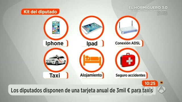 Los diputados disfrutan además de otras ventajas. Cuentan con una tarjeta anual de 3000 euros para gastar en taxis, una póliza de seguros de accidente, pensiones para exparlamentarios, coches oficiales para los portavoces de los grupos y dietas por desplazamiento y alojamiento. Privilegios que para algunos son excesivos y se han comprometido a reducir. Podemos lo intentó en la anterior legislatura, sin embargo 40 diputados desoyeron al partido y no renunciaron a los 3000 euros para taxis.