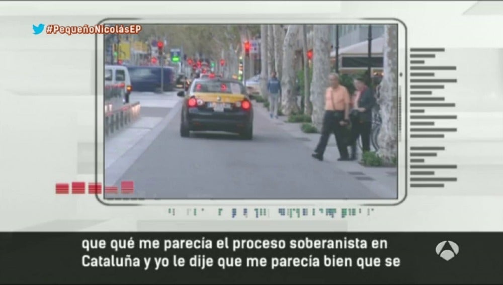 "El 7 de septiembre recogí en la parada del Hotel Majestic de Barcelona a este chico y un acompañante de unos 50 años. Me pidieron llevarles a una calle en Hospitalet", asegura este taxista a Espejo Público. "Durante la carrera, este Nicolás me preguntó por el proceso soberanista en Cataluña y yo le contesté que me parecía bien que se hiciera la consulta para que la gente se pudiera expresar. Resulta que me empezó a hablar de la unidad de España, de que si había mucha gente que no era de Cataluña y que había que luchar por la unidad de España", prosigue el taxista.