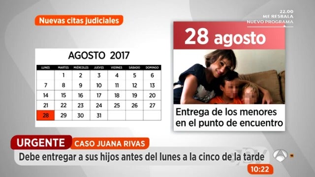 Juana Rivas debe entregar a sus hijos en el punto de encuentro familiar antes del próximo lunes, 28 de agosto, a las cinco de la tarde.