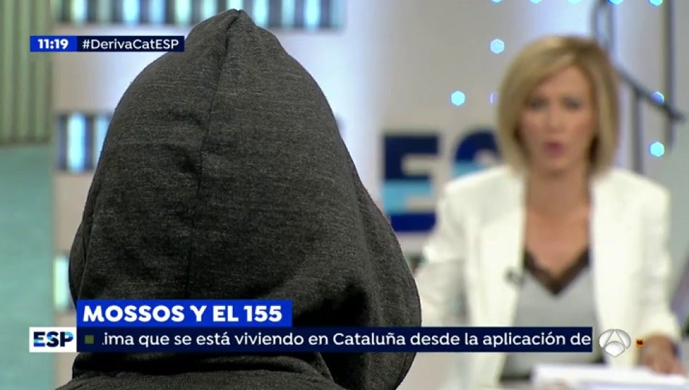 Cuatro mandos clave de los Mossos d'Esquadra dimiten para no seguir las órdenes del ministerio del Interior. 'Espejo Público' habla con un Mossso que quiere preservar su identidad y va a desvelar el clima que se está viviendo en Cataluña desde la aplicación del 155. Asegura que "miedo no he tenido pero estás señalado por ser constitucionalista. Si no quieres entrar en conflicto es mejor pasar del tema".