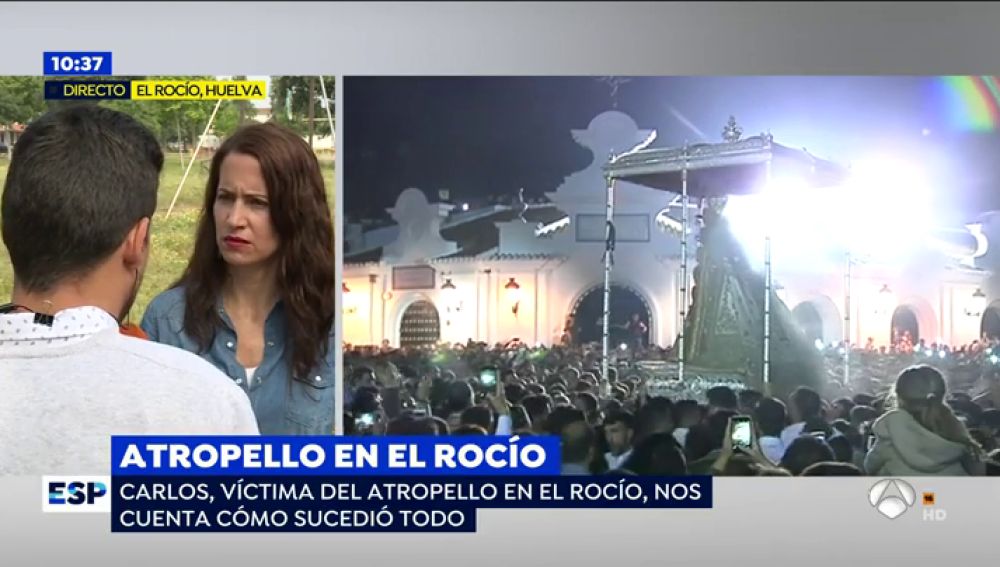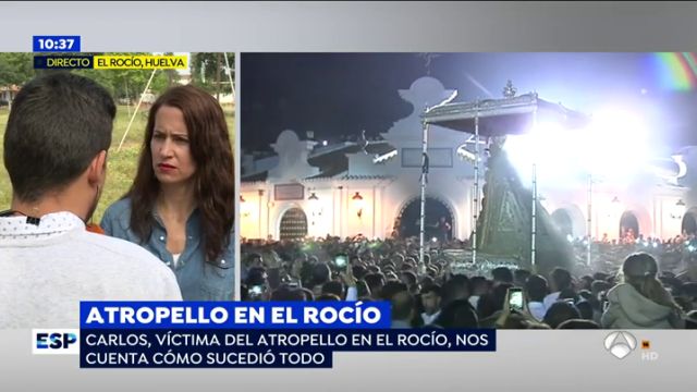 Uno de los caballistas que fue envestido por un vehículo en El Rocío (Huelva) ha contado para las cámaras de Espejo Público cómo se produjo el accidente. Asegura que él y su compañero, que se encuentra hospitalizado con secuelas neurológicas, iban a caballo cuando un vehículo les embistió. "Salimos volando, mientras estaba por los aires pensé que nos matábamos", señala. El conductor se dio a la fuga. Agradece las acciones de la Policía tras el incidente aunque asegura que la primera patrulla que llegó a auxiliarles tuvo una actitud "un tanto pasota".