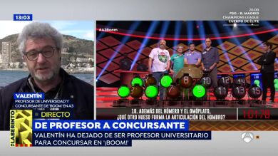 La historia de Valentín, que participa en el programa de Antena 3 'Boom' que presenta Juanra Bonet, ha destapado la precariedad de los profesores universitarios. Lo contó él mismo en el concurso. Estaba dando clases en la Universidad y ganaba 255 euros al mes. Asegura que los concursos de televisión se han convertido en su fuente de financiación para poder dedicarse a su obra creativa.
