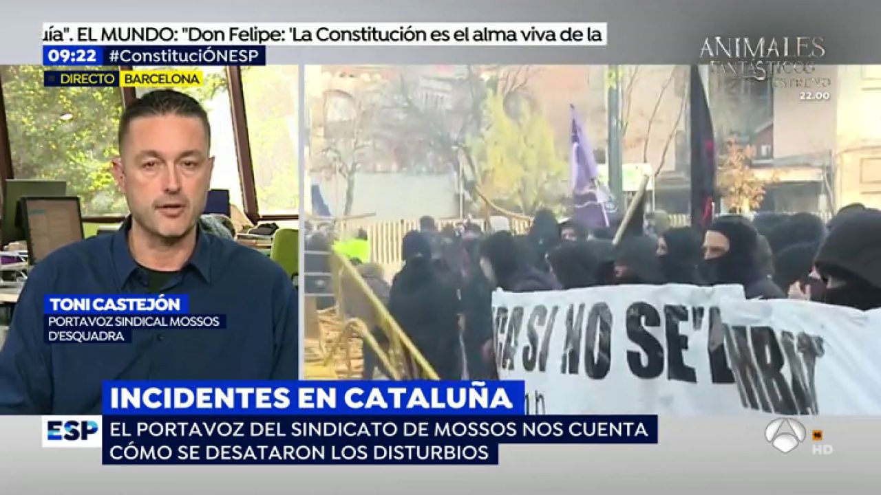 Gerona y Tarrasa fueron escenario de protestas contra actos conmemorativos de la Constitución. Grupos antifascistas trataron de reventar las concentraciones de Vox. Por el momento, hay 3 detenidos y decenas de heridos. Toni Castejón, Portavoz Sindical de Mossos d'Esquadra asegura que ya son 20 Mossos heridos tras la carga. "Hay mucha violencia contra la policía y eso tiene que ser condenados por todos los partidos políticos", insiste.