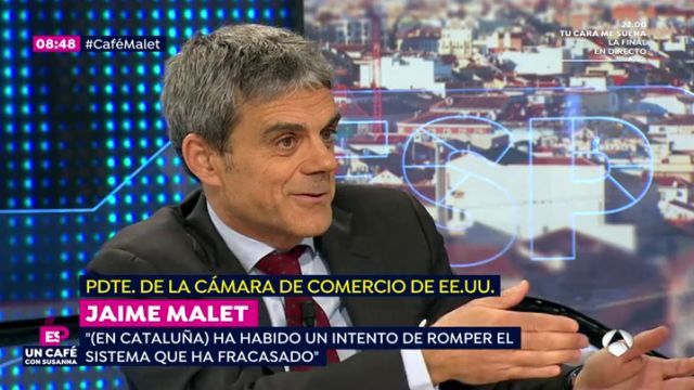 Malet considera que el conflicto catalán ha provocado que la imagen de España empiece a verse con "sorna" en el extranjero. Considera que la inercia de la economía es buena y los políticos todavía no la han estropeado, aunque es consciente de que los pequeños empresarios cada vez registran peores cifras.
