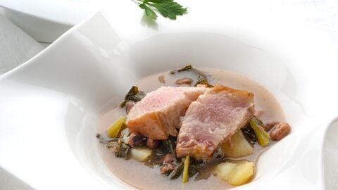 Karlos Arguiñano ha elaborado un plato gallego y auténtico, incluso las berzas que ha usado vienen directas desde Galicia.
