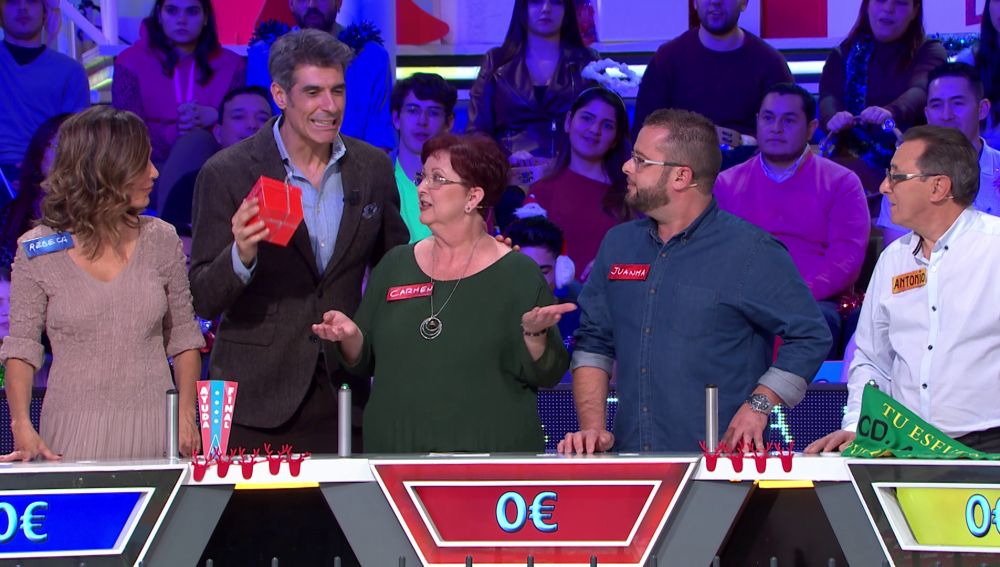 Carmen y Juanma son los únicos que tienen la cajita roja todavía, Jorge les felicita por ello y Carmen cree que le va a gafar haberlo dicho. Después de tirar en el 'Panel con bote' Jorge le tiene que pedir perdón a Carmen, ¿le habrá gafado al final el presentador?